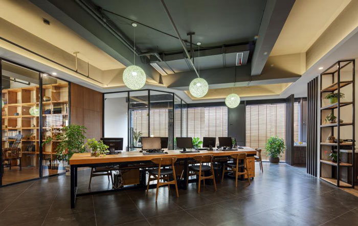 精簡的家具配置:選用簡潔、實(shí)用的辦公家具,如低矮的桌椅、多功能儲(chǔ)物柜等,減少不必要的物品占用空間。