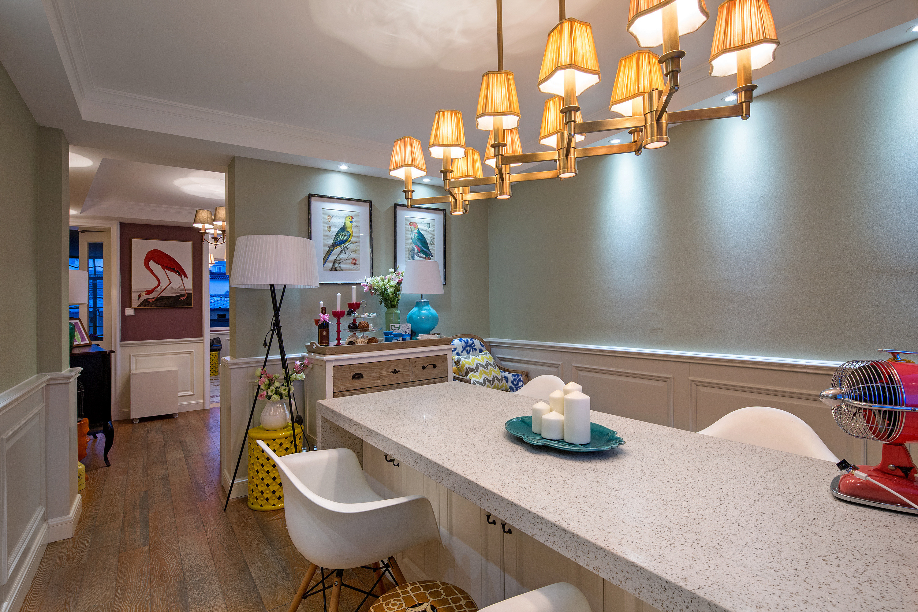 在裝修中注重每一個細節(jié)的設(shè)計與處理,例如在墻面、地面、家具等方面使用優(yōu)質(zhì)的材料,并精心挑選裝飾品,如水晶吊燈、花卉等,增加整體氛圍的高檔質(zhì)感;